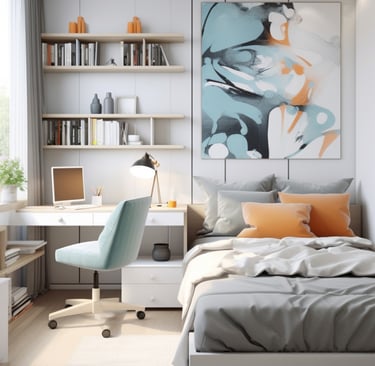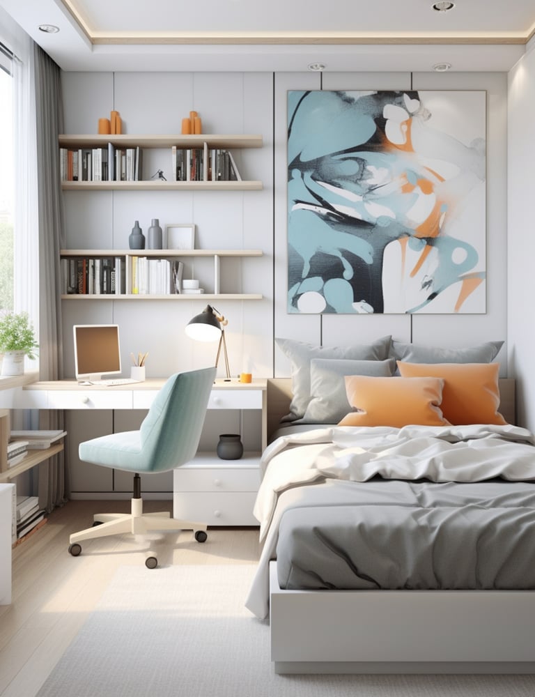 Wall-Mounted Desks & Shelves: Free up floor space by opting for floating desks or shelves. These can provide functional workstations or display areas without bulky legs.